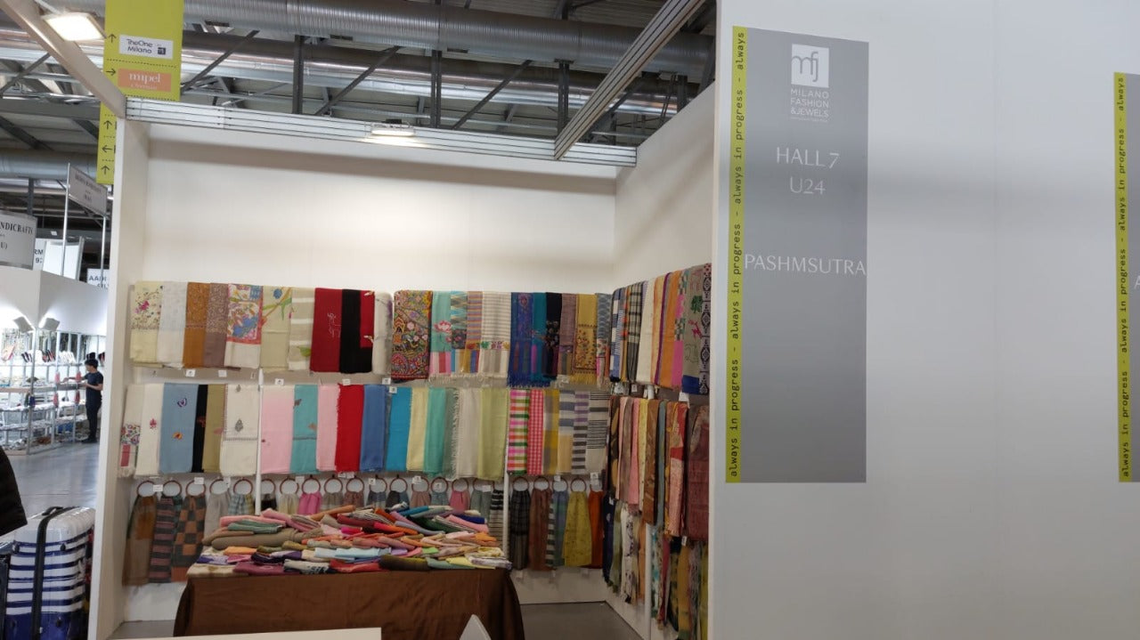 Pashmsutra proudly participated in the Milano Fashion & Jewels, exhibiting our unique assortment of genuine handcrafted Pashmina shawls and accessories. With this opportunity, we were able to introduce the international fashion community to the rich heritage of Ladakhi and Kashmiri Pashmina embroidery and weaving. Our collection stood out for its elaborate designs, sustainable manufacturing, and artisanal luxury, which perfectly encapsulated the essence of classic style and artistry.