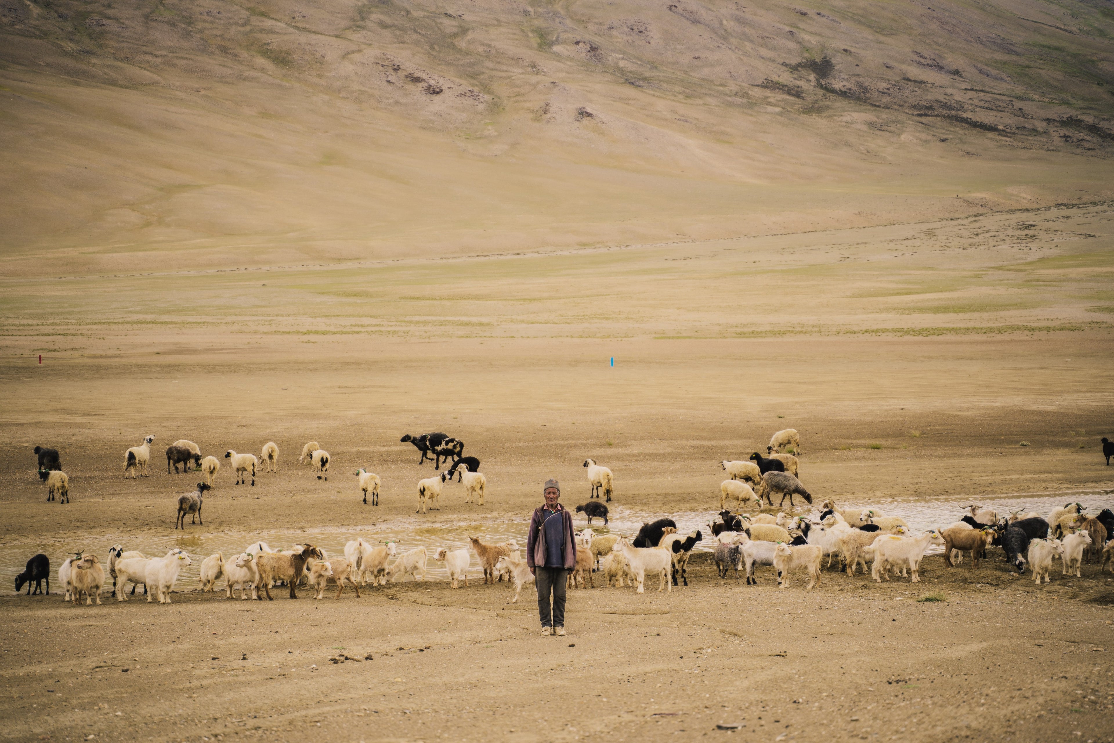 Every spring, our journey begins with fresh and soft Pashmina wool acquired from our own collection centres in Ladakh. Pashmina is gathered from the downcoat of the Himalayan goat, and from here the fibre travels to Kashmir, where our weavers await it like an artist waits for inspiration. No one rushes, as the threads arrive, but they are spun, woven and embroidered, one delicate twist at a time.